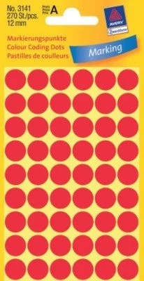 - Kółka do zaznaczania Avery Zweckform 3141, kolor czerwony. Świetnie sprawdzą się do zaznaczania dat urlopów, spotkań czy miejsc na mapie. Szeroki asortyment rozmiarów i kolorów. Idealne do kolorystycznego oznaczania dokumentów.