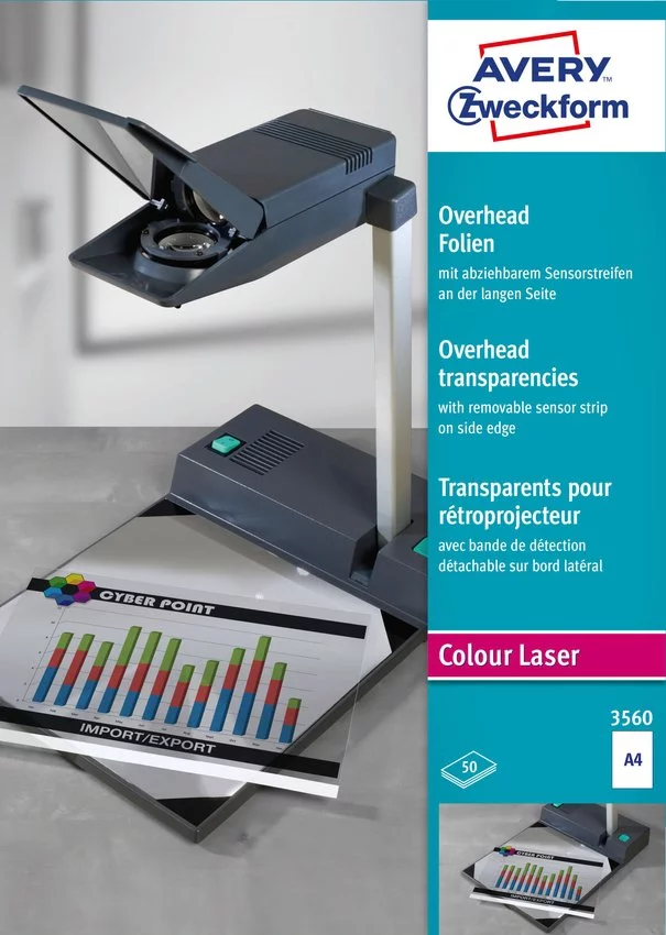 Folie do Rzutników Powlekane A4 0,10mm 50szt. Laser Avery 210x297 No.3560