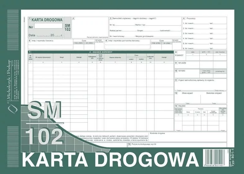 Karta Drogowa Sm/102 - Sam. Ciężarowy A4 Offset 801-1 /MiP