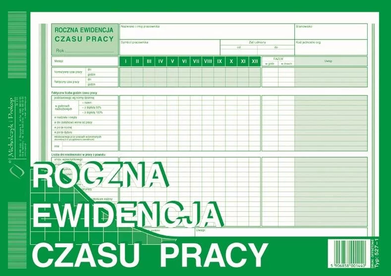 Roczna Ewidencja Czasu Pracy A4 Offset 527-1 /MiP