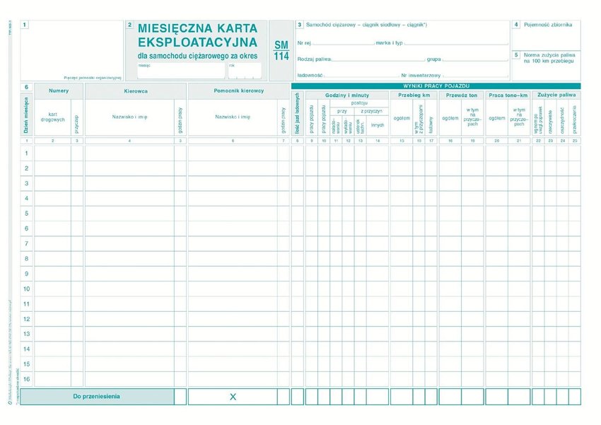 Miesięczna Karta Eksploatacyjna Sm/114 - Sam. Cięż. A4 Offset 803-1 /MiP