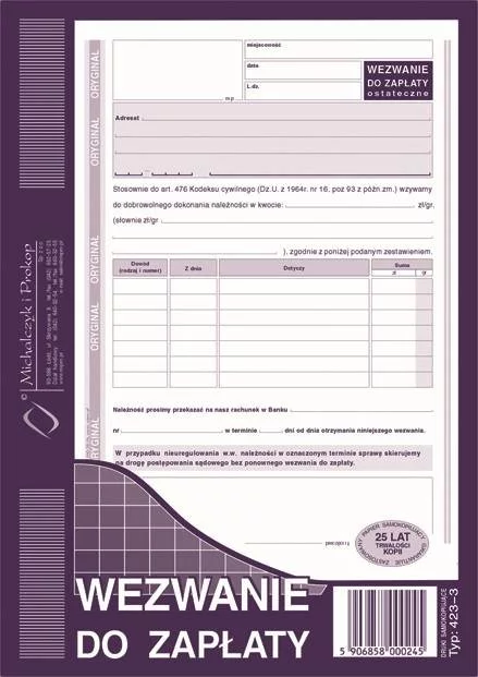 Wezwanie do Zapłaty - Ostateczne A5 Oryg.+1k 423-3 /MiP