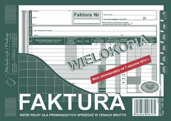 Faktura wzór pełny dla prowadzących sprzedaż w cenach brutto marki MiP