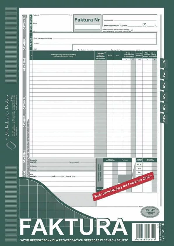 Faktura Brutto A4 Oryg.+1k Pion 121-1E /MiP