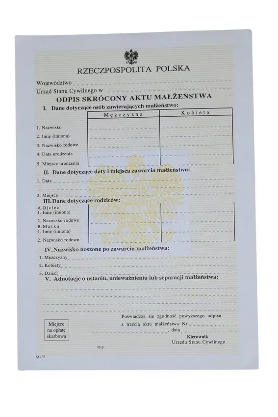 Odpis Skr. Aktu Małżeństwa M13 A'100