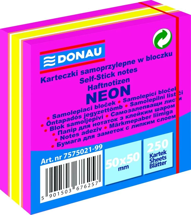 Bloczek Samoprzylepny 50x50 250k 4kol. Neon (różowy) /Donau