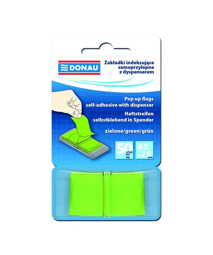 Zakładki Indeks. PP z Dyspenserem 45x25 A'50 Zielone marki Donau