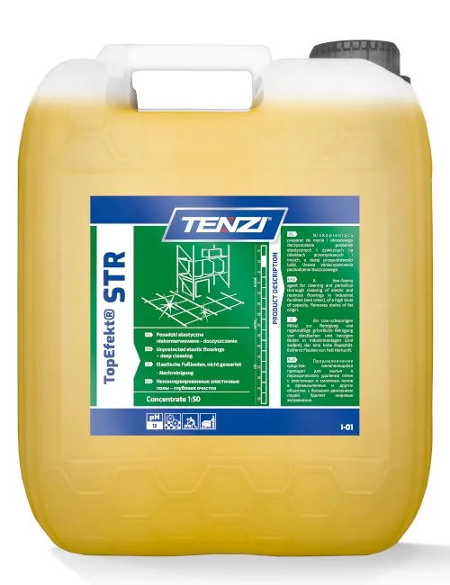 - Skoncentrowany, niskopieniący, alkaliczny środek TENZI Topefekt STR 10L do ręcznego i maszynowego doczyszczania silnie zabrudzonych posadzek przemysłowych i elastycznych, usuwa tłuste i olejowe zanieczyszczenia.