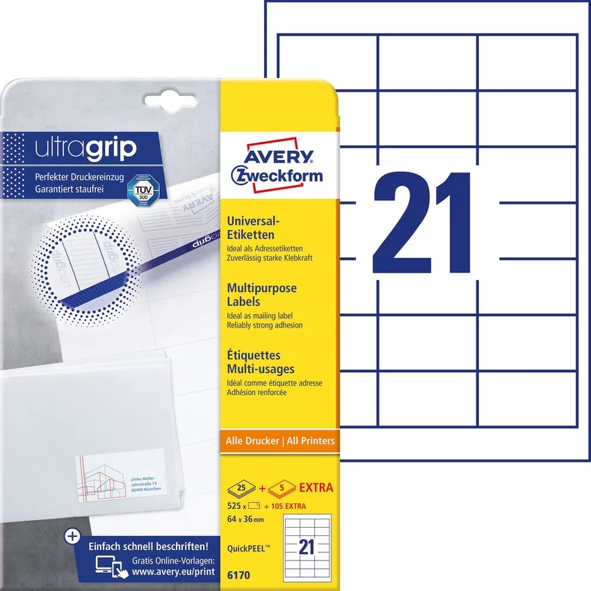 Etykiety Samoprzylepne Avery 64x36 21/A4 A'25+5 Białe No.6170