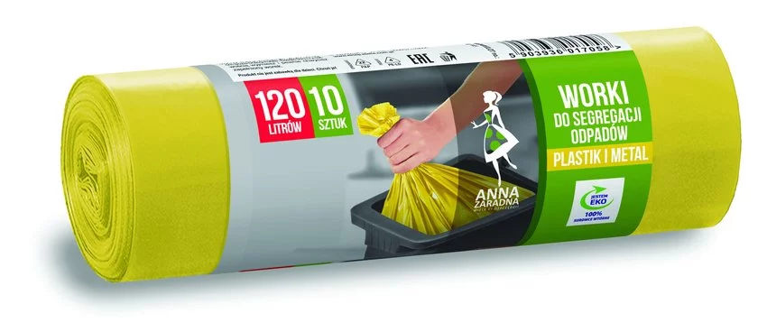 Worki Na Śmieci DO Segregacji Odpadów Plastikowych i Metalowych LDPE 120L 10szt. Żółte marki Anna Zaradna
