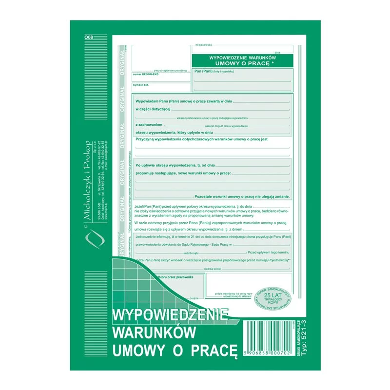 Wypowiedzenie Warunków Umowy o Pracę A5 40k marki MiP