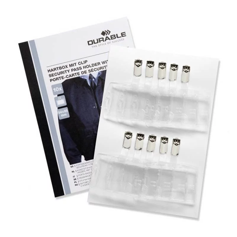 Etui do Kart Identyfikacyjnych z Klipem 54x85mm 10szt. Przezroczyste /Durable 869819
