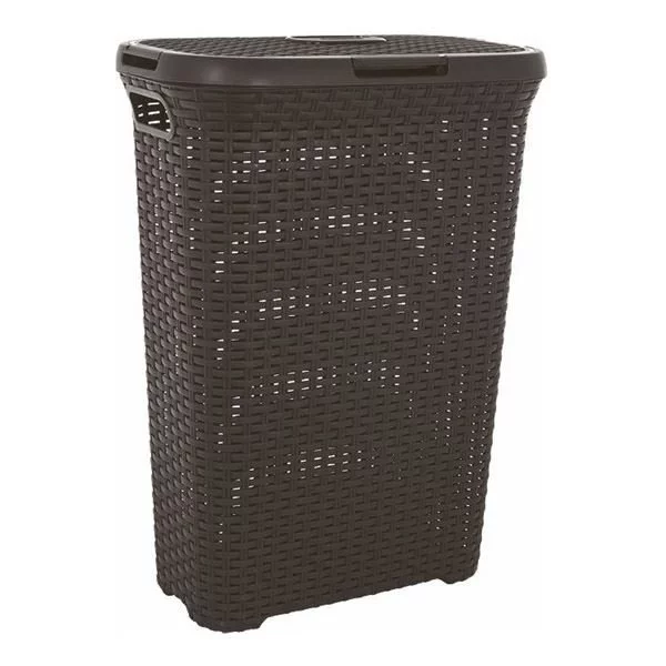 - Kosz na bieliznę Curver Style 40L, ciemnoszary, z tworzywa imitującego rattan. Ażurowa konstrukcja zapewnia wentylację, wygodne uchwyty ułatwiają przenoszenie, idealny do łazienki i pralni.