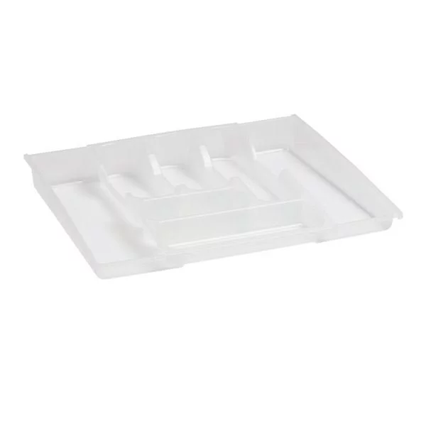 - Rozsuwany transparentny wkład na sztućce Curver, pasuje do większości szuflad kuchennych, chroni je przed zarysowaniami. Solidny, trwały pojemnik, długość 300 mm, szerokość 420 mm, wysokość 64 mm.