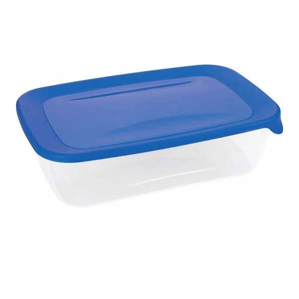 - Prostokątny pojemnik na żywność Fresh&Go 2L Curver, niebieski, transparentny. Do lodówki, mikrofalówki i zmywarki, możliwość piętrowania, długo utrzymuje świeżość przechowywanych produktów.