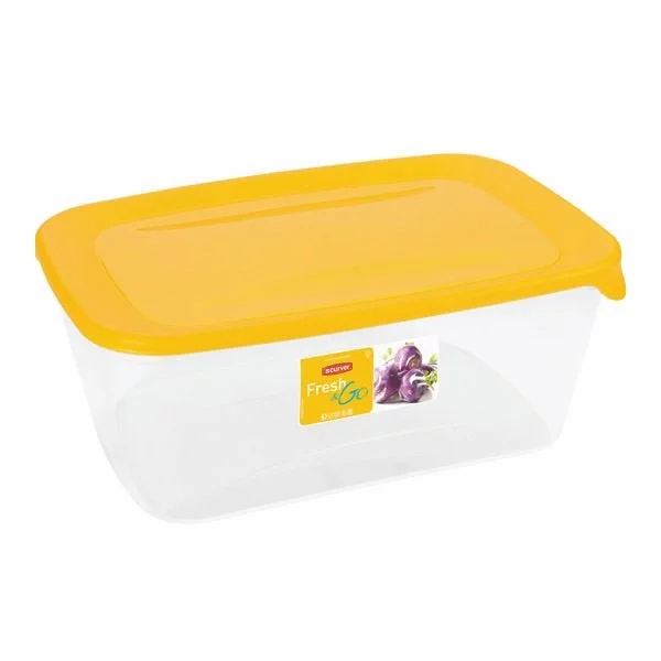 - Pojemnik na żywność Fresh&Go Curver 3L, żółty, transparentny. Do lodówki, mikrofali i zmywarki. Możliwość piętrowania, długo utrzymuje świeżość produktów. Wymiary: 25,7x16,7x10 cm.