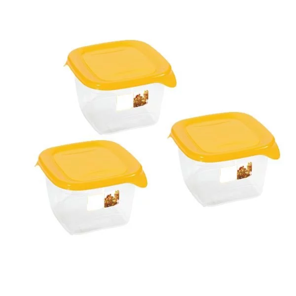 - Zestaw 3 kwadratowych pojemników Curver Fresh&Go 1,2 l, żółtych, transparentnych. Do lodówki, mikrofalówki i zmywarki, można je piętrować. Utrzymują świeżość jedzenia przez długi czas.