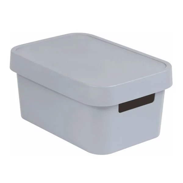 - Pojemnik Curver Infinity 4,5L z przykrywką, jasno-szary. Idealny na żywność, kosmetyki i drobiazgi. Modny, prosty design, możliwość ustawiania jeden na drugim. Wymiary: 27x19x12 cm.