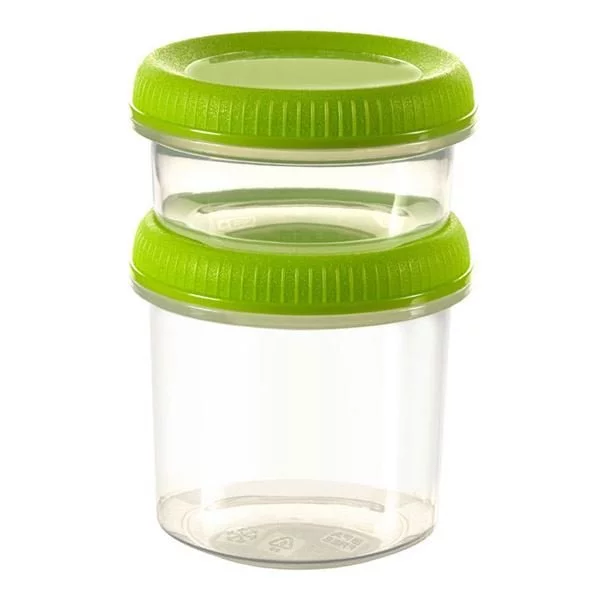 - Zestaw 2 okrągłych szczelnych pojemników na sos Curver Smart To Go 80 ml i 150 ml, zielonych, idealnych do transportu sosów i dressingów do obiadu lub sałatki, bezpiecznych w kontakcie z żywnością.
