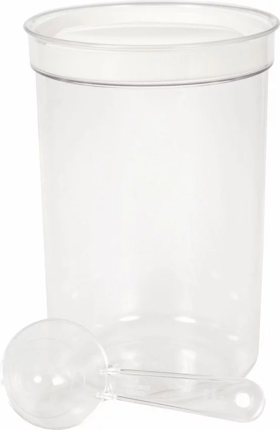 Pojemnik wykonano z wysokiej jakości tworzywa przeznaczonego do kontaktu z żywnością, co gwarantuje bezpieczeństwo codziennego użytkowania. Solidna pokrywka, wygodny kształt oraz dołączona miarka/łyżeczka ułatwiają odmierzanie porcji i utrzymanie porządku w kuchni. To praktyczny element wyposażenia dla osób, które chcą przechowywać produkty sypkie w estetyczny i uporządkowany sposób.
