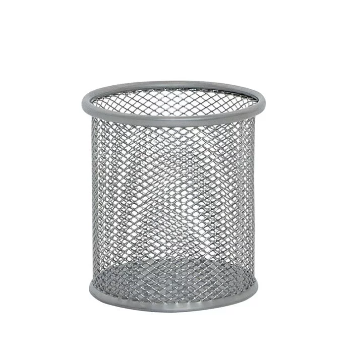 Pojemnik na długopisy wykonany z metalowej siateczki.Kształt okrągły.Kolor srebrny.Świetnie nadaję się na biurko,szafkę,stolik.Dzięki niemu możemy mieć w jednym miejscu wszystkie potrzebne nam przyrządy kreślarskie na wyciągnięcie ręki.
