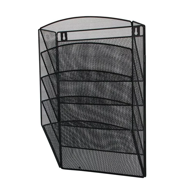 Zestaw 5 półek na dokumenty, korespondencję lub czasopisma. Wykonany z metalowej siateczki powlekanej lakierem. Idealnie nadaję się na biura. Na tylnej ściance dwa dedykowane otwory do mocowania na ścianie. W komplecie znajduję się zestaw mocujący do ściany.