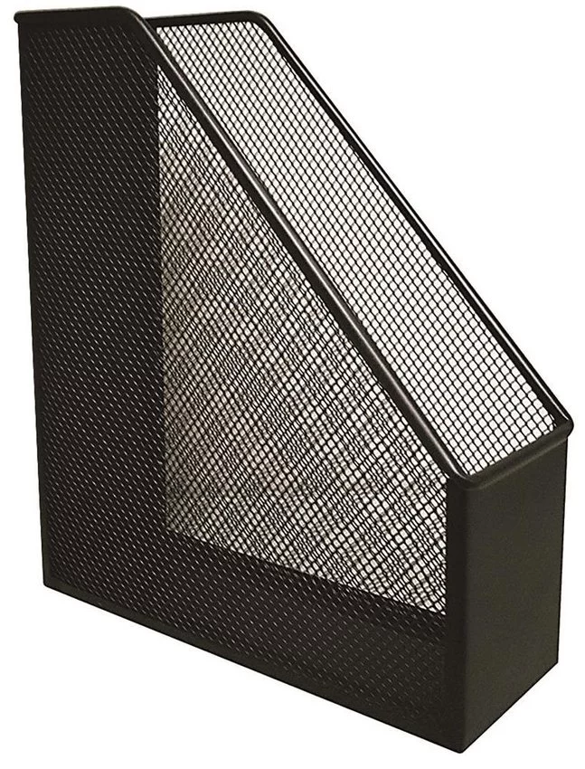 - pojemnik na dokumenty, czasopisma, foldery z metalowej siateczki powlekanej lakierem