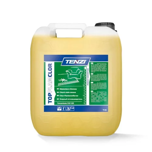 Tenzi Odplamiacz Chlorowy do Tkanin Syntetycznych Top Plam Clor 5L to profesjonalny, silnie skoncentrowany wybielacz i odplamiacz, stworzony z myślą o wymagających użytkownikach – pralniach, firmach sprzątających, hotelach, gastronomii oraz osobach, które oczekują efektu „jak z pralni chemicznej” w warunkach domowych. Preparat skutecznie usuwa plamy po sokach, alkoholach, przetworach owocowo-warzywnych, a także uporczywe zabrudzenia tłuszczowe, takie jak olej, tłuszcz czy smar. Dodatkowo neutralizuje nieprzyjemne zapachy, w tym pochodzenia zwierzęcego oraz te powstające w wyniku procesów gnilnych. Środek został opracowany przede wszystkim do tkanin syntetycznych i powierzchni tekstylnych wykonanych z włókien sztucznych (np. poliester, poliamid, akryl, nylon, polipropylen, poliakrylan), ale może być także stosowany na włóknach naturalnych o trwałych barwach – po wcześniejszym wykonaniu próby na mało widocznym fragmencie. Top Plam Clor znakomicie sprawdza się jako odplamiacz miejscowy, wybielacz do pościeli oraz w roli wspomagającego środka przy szamponowaniu wykładzin i dywanów w zestawie z produktami Tenzi Textil lub Textil Wash. Wysokie pH (ok. 14) zapewnia szybkie i zdecydowane działanie, a skład spełniający kryteria biodegradowalności zgodnie z rozporządzeniem WE 648/2004 czyni go rozwiązaniem nowoczesnym i odpowiedzialnym środowiskowo.