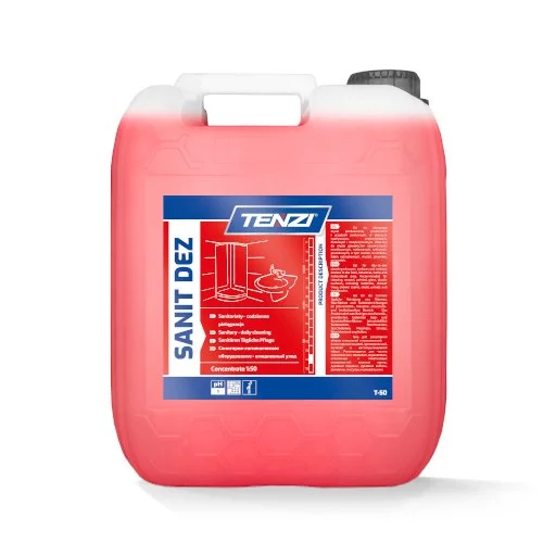 Tenzi Antybakteryjny Preparat do Mycia Pomieszczeń i Urządzeń Sanitarnych Sanit Dez 5L to profesjonalny, żelowy koncentrat przeznaczony do codziennej higieny łazienek, toalet oraz wszelkiego typu pomieszczeń sanitarnych. Formuła oparta na kwasie mlekowym skutecznie usuwa z powierzchni osady z twardej wody, kamień, nacieki mineralne oraz resztki mydła, jednocześnie nadając im połysk i zapewniając działanie antybakteryjne. Preparat jest bezpieczny dla większości materiałów spotykanych w łazienkach – ceramiki, tworzyw sztucznych, elementów stalowych czy powierzchni emaliowanych – dzięki czemu można go używać zarówno w domach, jak i obiektach użyteczności publicznej: hotelach, pensjonatach, biurach, szkołach, placówkach medycznych czy obiektach sportowych. Biodegradowalność środka sprawia, że jest on przyjazny dla środowiska, a długo utrzymujący się, świeży kwiatowy zapach podnosi komfort użytkowania pomieszczeń po sprzątaniu. Produkt łączy więc w sobie kilka funkcji – mycie, dezynfekcję, odkamienianie i pielęgnację – co pozwala ograniczyć liczbę stosowanych środków chemicznych i ułatwia utrzymanie wysokiego standardu czystości.