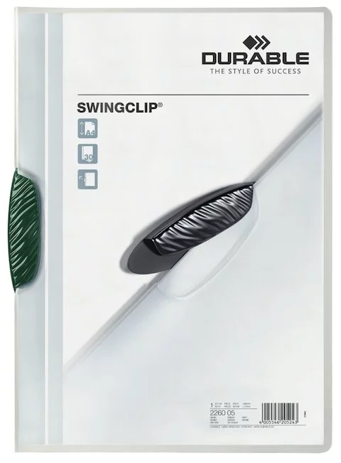Skoroszyt Zaciskowy A4 PP Swingclip 30 Kartek Zielony /Durable 226005