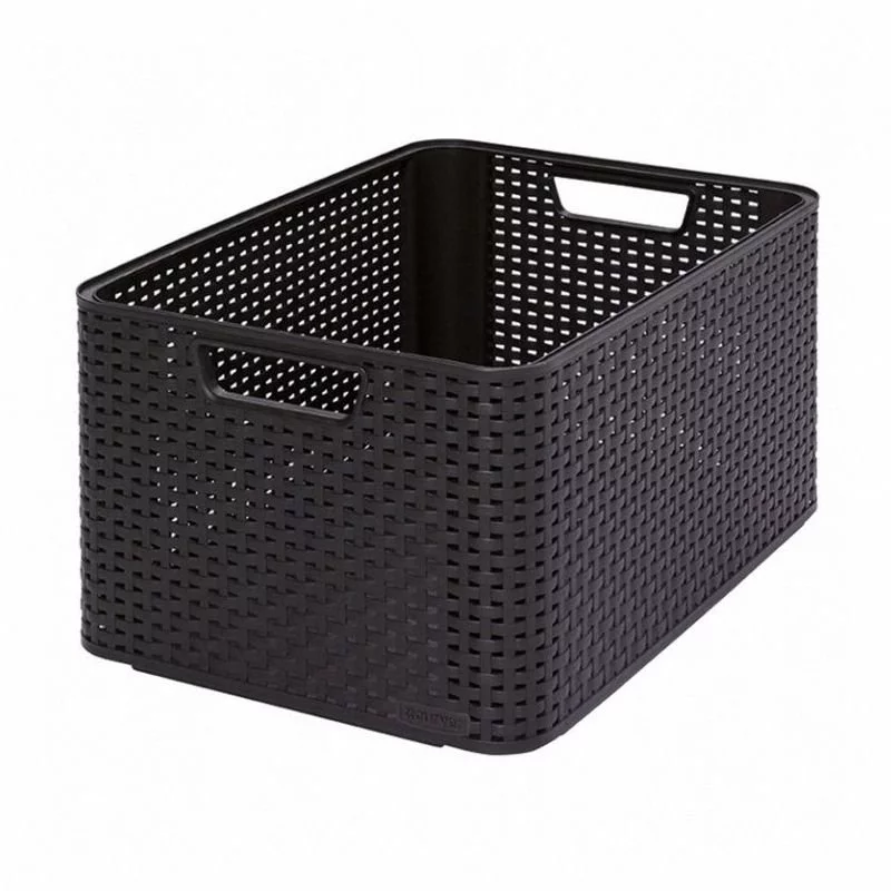 - Koszyk Curver Style L 30 l w kolorze ciemny brąz, z tworzywa imitującego rattan. Idealny do kuchni, łazienki, salonu czy biura. Wzmocnione, zintegrowane uchwyty, wymiary 436x326x230 mm.