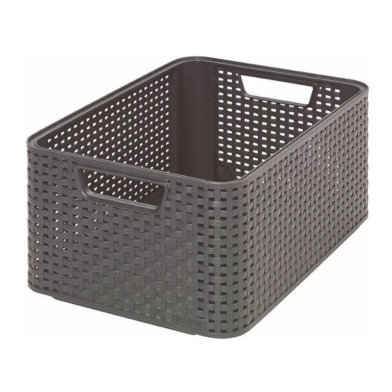 - Koszyk Curver Style M 18 l w kolorze ciemnoszarym. Imitacja rattanu, wzmocnione, zintegrowane uchwyty nie wystają poza obręb kosza, idealny do kuchni, łazienki, biura i innych pomieszczeń.
