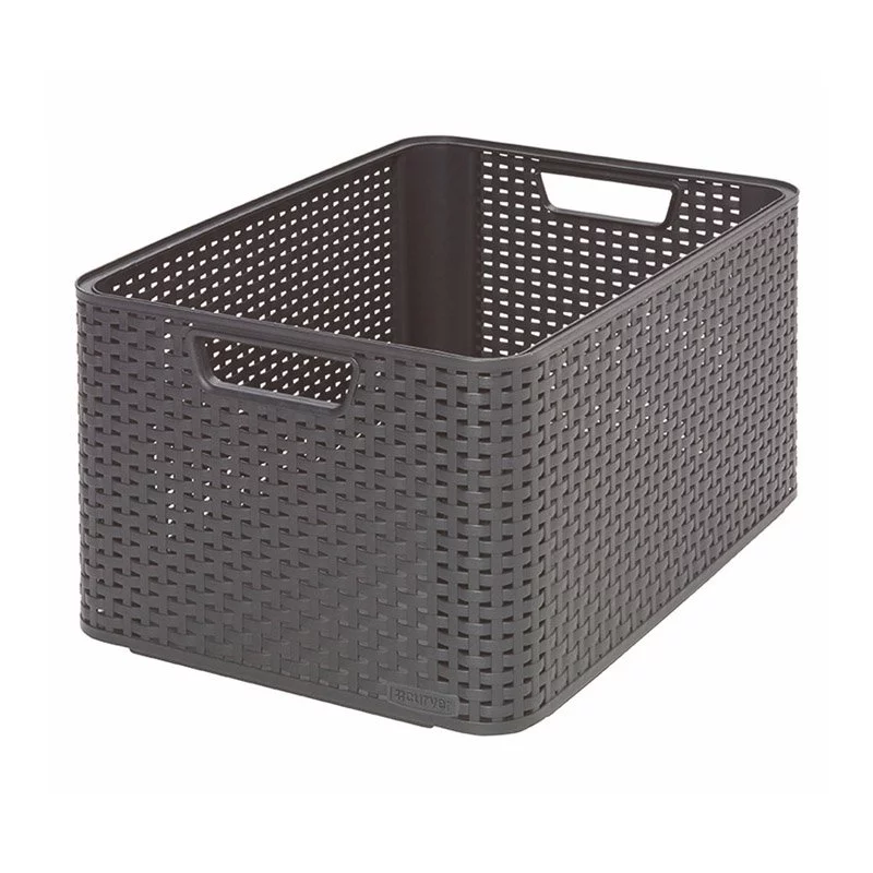 - Koszyk Curver Style L 30 l w kolorze ciemnoszarym. Imitacja rattanu, wzmocnione zintegrowane uchwyty, idealny do kuchni, łazienki, salonu, sypialni czy biura. Wymiary 436x326x230 mm.