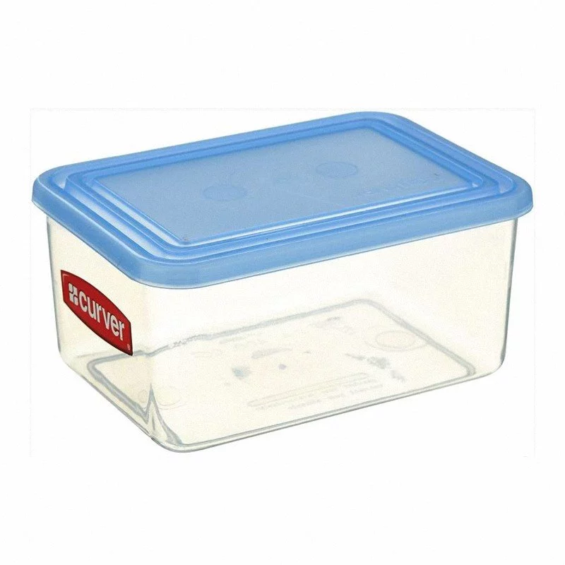 - Prostokątny pojemnik na żywność Curver 0,8L, niebieski/transparentny. Do lodówki, mikrofalówki i zmywarki. Można ustawiać jeden na drugim, certyfikowany do kontaktu z żywnością. Wymiary 155x115x70 mm.