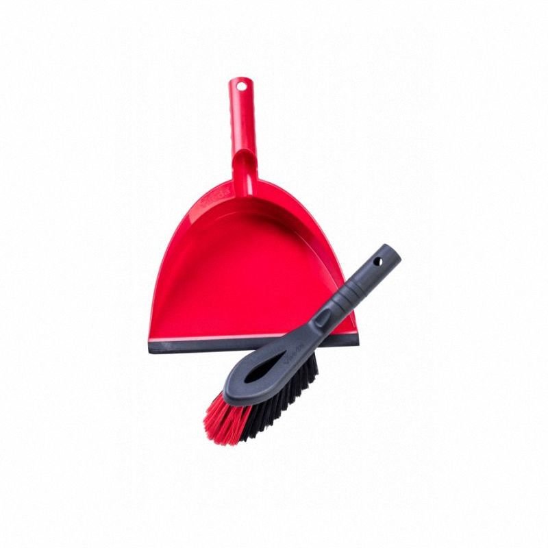 - Czerwono‑czarna zmiotka i szufelka plastikowa 2w1 Vileda — szybkie porządki i poręczne łączenie elementów