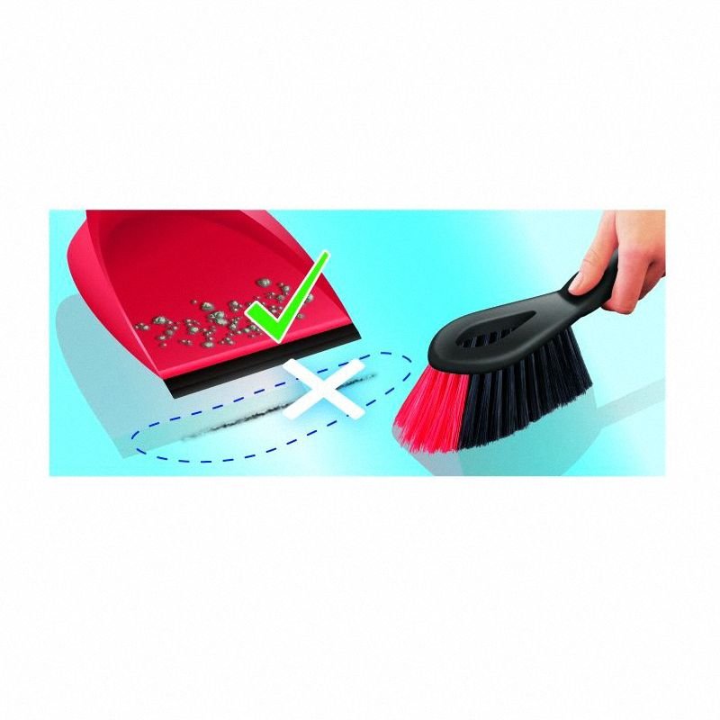 Włosie nie filcuje się i zachowuje sprężystość, więc łatwo wypłukać z niego kurz i piasek. Gładka powierzchnia szufelki nie chłonie zapachów i nie zatrzymuje brudu. Przykłady: porządki przy misce pupila, czyszczenie bagażnika samochodu po wycieczce lub zebranie drobnych okruchów w domowym biurze.