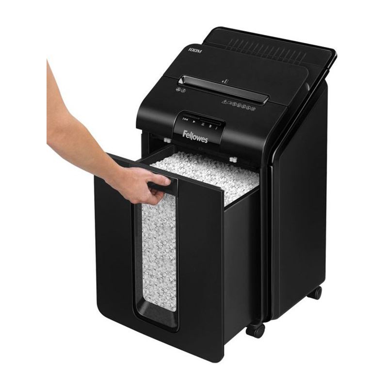 - Niszczy automatycznie do 100 kartek oraz do 10 kartek w trybie podajnika ręcznego.