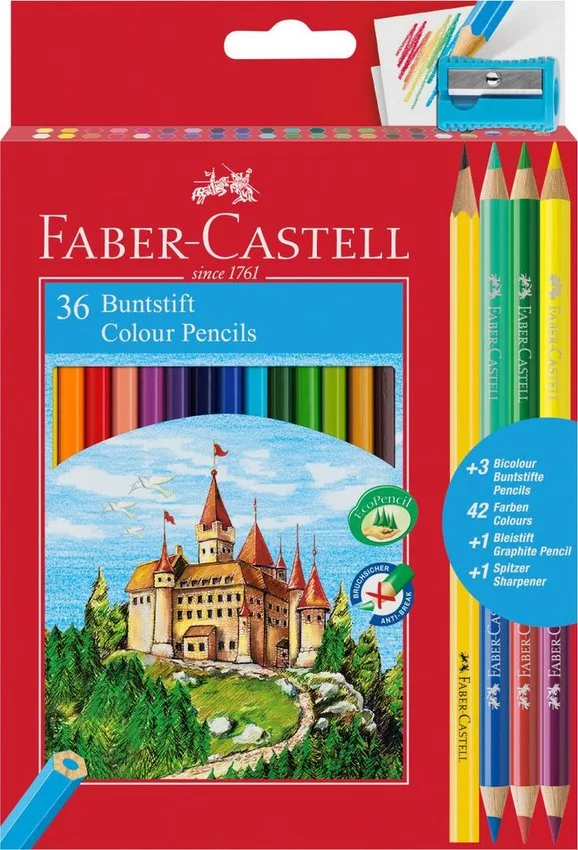 Kredki Zamek 36 Kol. + 3 Kredki Dwustronne + Ołówek + Temperówka [110336 FC] /Faber Castell