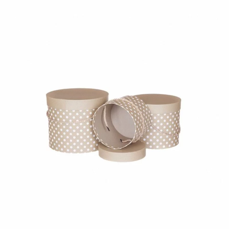 Pudełka Ozdobne w Groszki ze Sznurkiem A'3 [DPBO-016] Ecru /DpCraft
