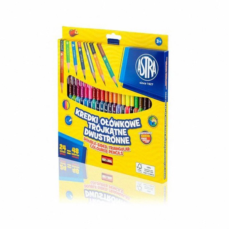 Kredki Ołówkowe 24/48 Kol. Dwustronne Trójkątne / Astra