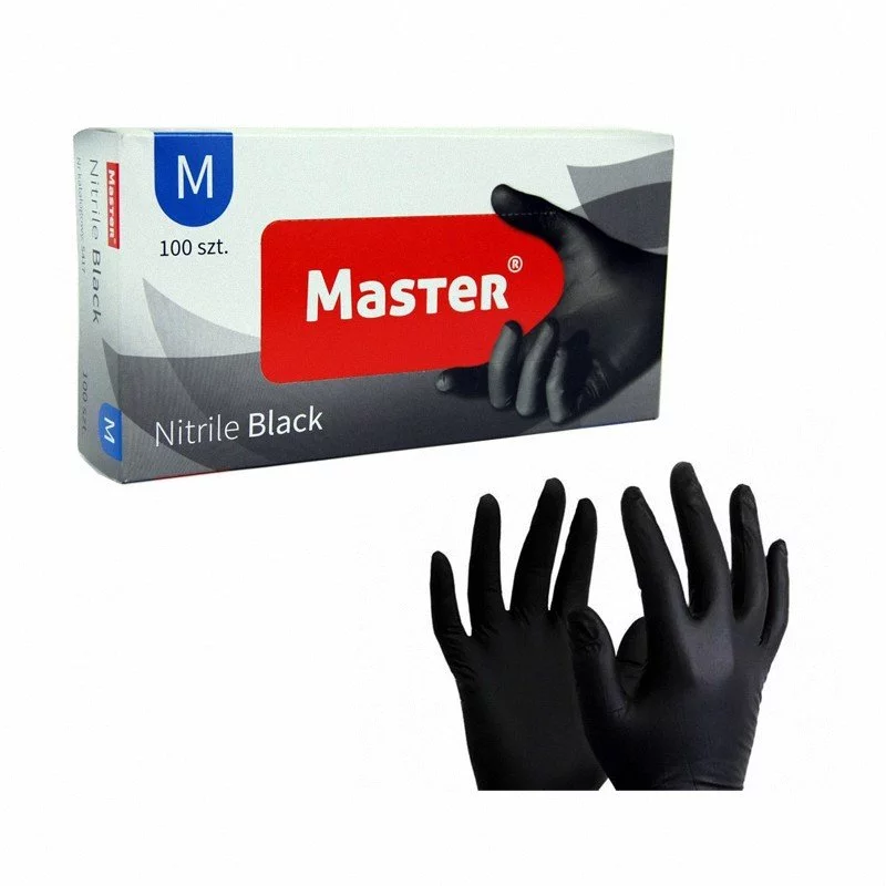 Rękawice Nitrylowe Bezpudrowe Czarne M 100szt. / Master