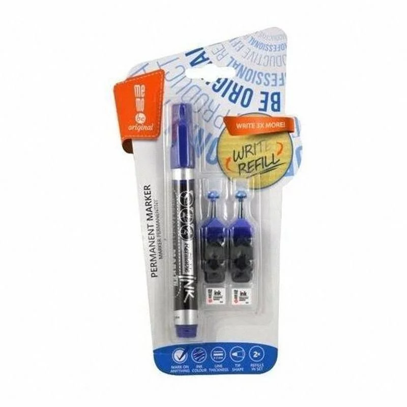 Marker Permanentny + 2 Ampułki Z Zapasowym Tuszem Okrągła Końcówka Kolor Niebieski /Memobe