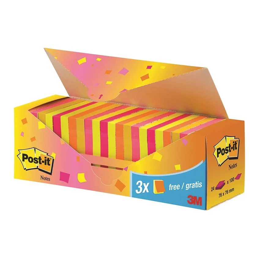 Bloczek Samoprzylepny Post-It (654-Np24) 76X76Mm 21+3X100 Kart. Mix Kolorów 3 Bloczki Gratis