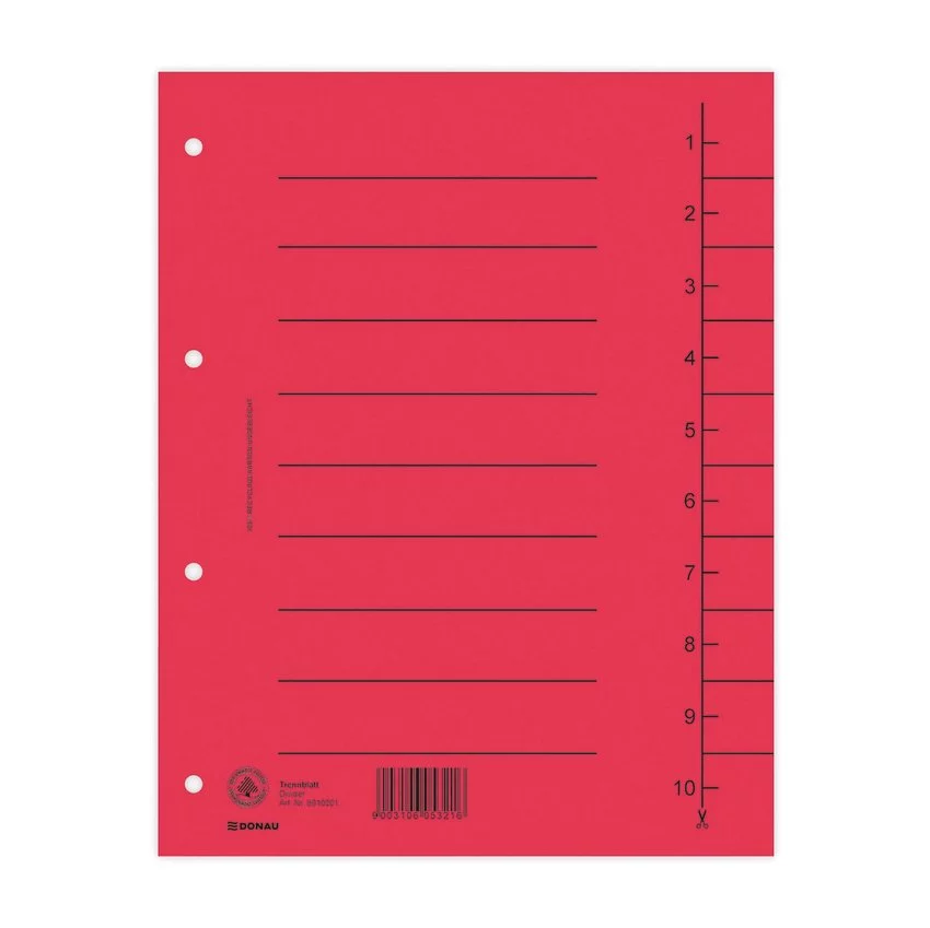 Przekładka Donau Karton A4 235X300mm 1-10 1 Karta Czerwona