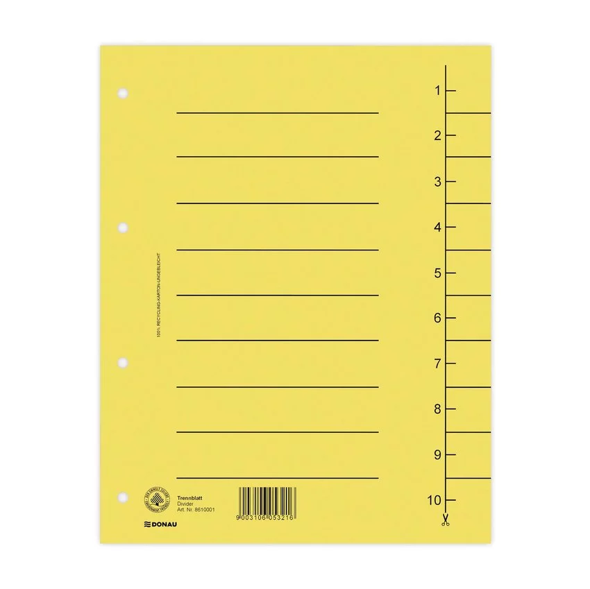 Przekładka Donau Karton A4 235X300mm 1-10 1 Karta Żółta