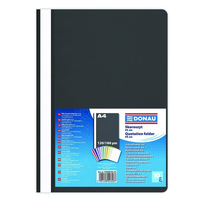 Skoroszyt Donau PP A4 Standard 120/180 mikr. Czarny