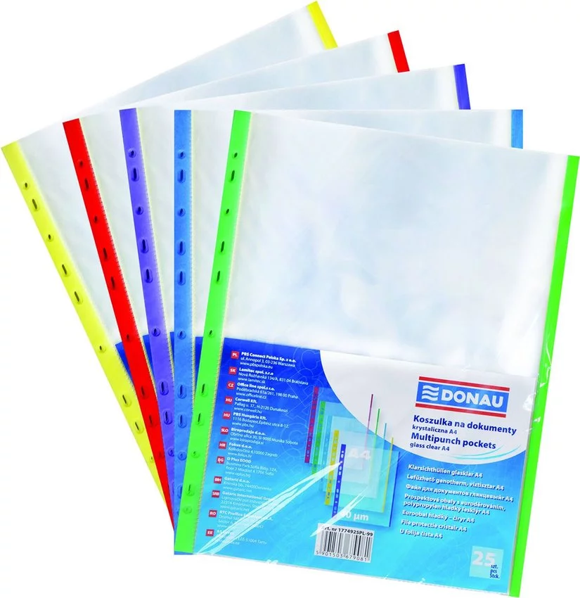 Koszulki Na Dokumenty Donau PP A4 Krystal 40 mikr. Kolorowy Brzeg - Mix Kolorów 25Szt. Z Koloru (Mix W Kartonie)