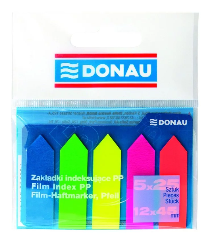 Zakładki Indeksujące Donau PP 12X45mm Strzałka 5X25 Kart. Mix Kolorów