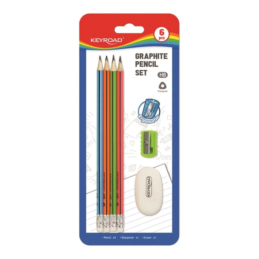 Zestaw Ołówków Dreanianych Keyroad Z Gumką I Temperówką Hb Blister Mix Kolorów