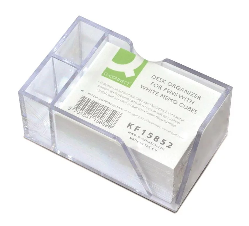 Przybornik Na Biurko Q-Connect Na Długopisy Z Białymi Karteczkami Przeźroczysty